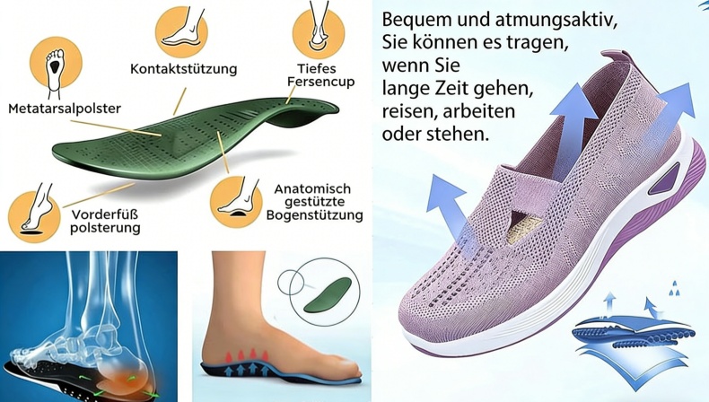Diese gewebten, orthopädischen Damenschuhe sind atmungsaktiv, flexibel und strapazierfähig. Dank des einzigartigen Keilsohlendesigns sind sie leicht und flexibel und bieten ein angenehmes Laufgefühl sowie maximale Bewegungsfreiheit und Komfort.